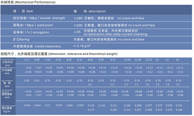 规格:∮4.76mm、∮6.0 mm、 ∮6.35mm、∮7.0 mm、 ∮7.14mm、∮8.0 mm、 ∮9.52mm、∮10.0mm、 ∮12.0mm 壁厚:∮0.7mm、1.0mm